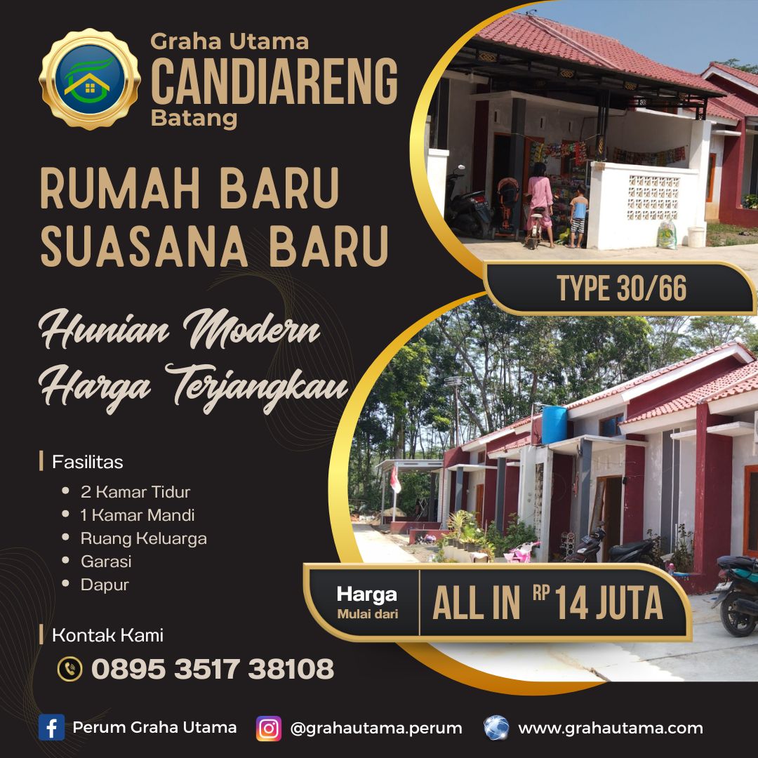 Perumahan subsidi Graha Utama Candiareng adalah sebuah proyek perumahan subsidi tipe bangunan 36 dengan luas tanah 66 m2. Jalan cor Beton, atap genteng, dinding bata merah plester aci finishing cat, lantai keramik 40 x 40, plafond eternity, gerbang megah, keamanan 24 Jam, Mushola, Listrik 1.300 Watt, Air PAMSIMAS Sumur Bor, Jalan Utama Lebar.